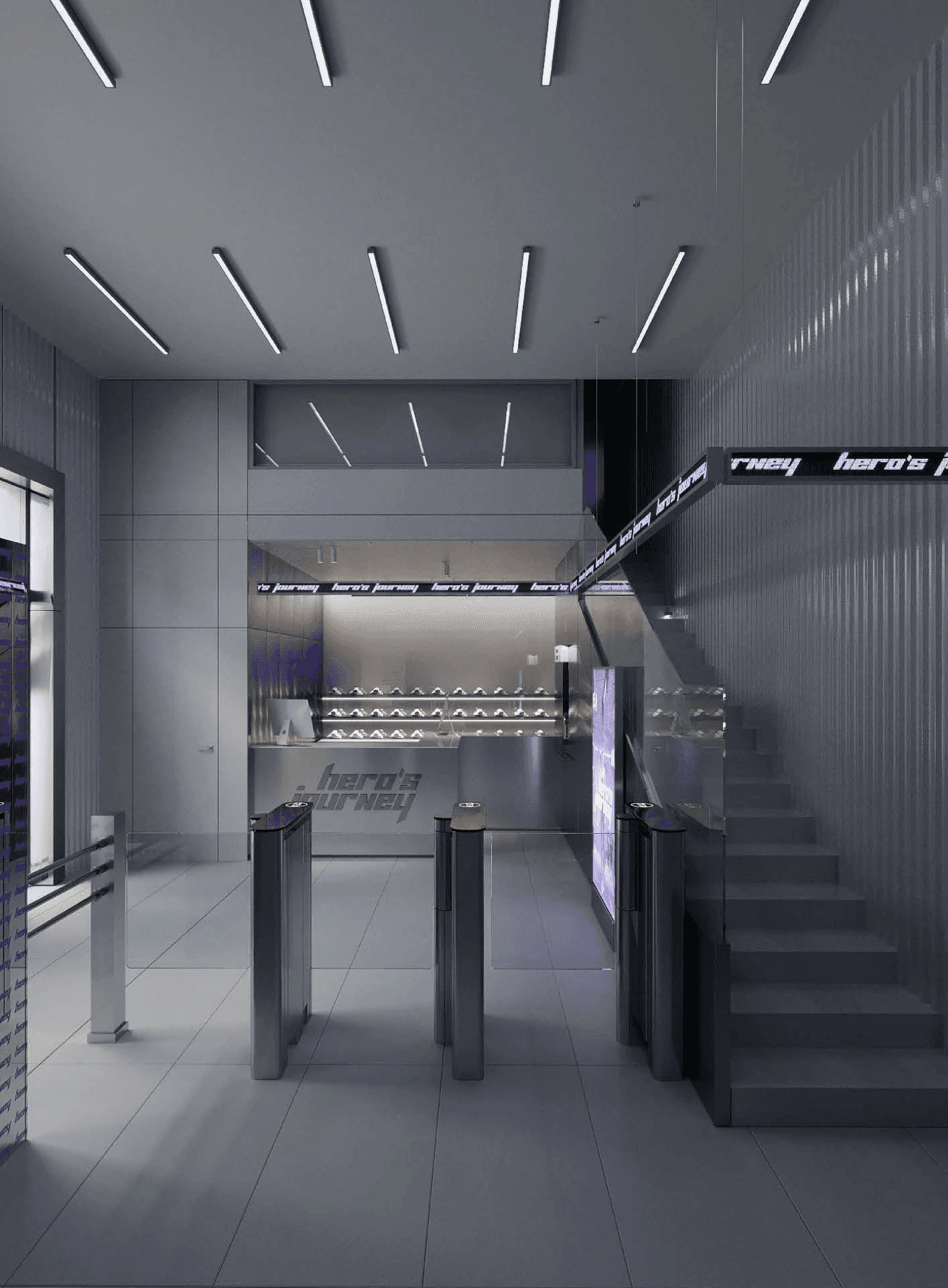 A gamified, fully automated fitness studio with step-by-step guided workouts. The fit-out combines custom lighting design, brand-integrated interiors, and a high-end equipment layout — creating an immersive training environment that brings the Hero's Journey brand to life.